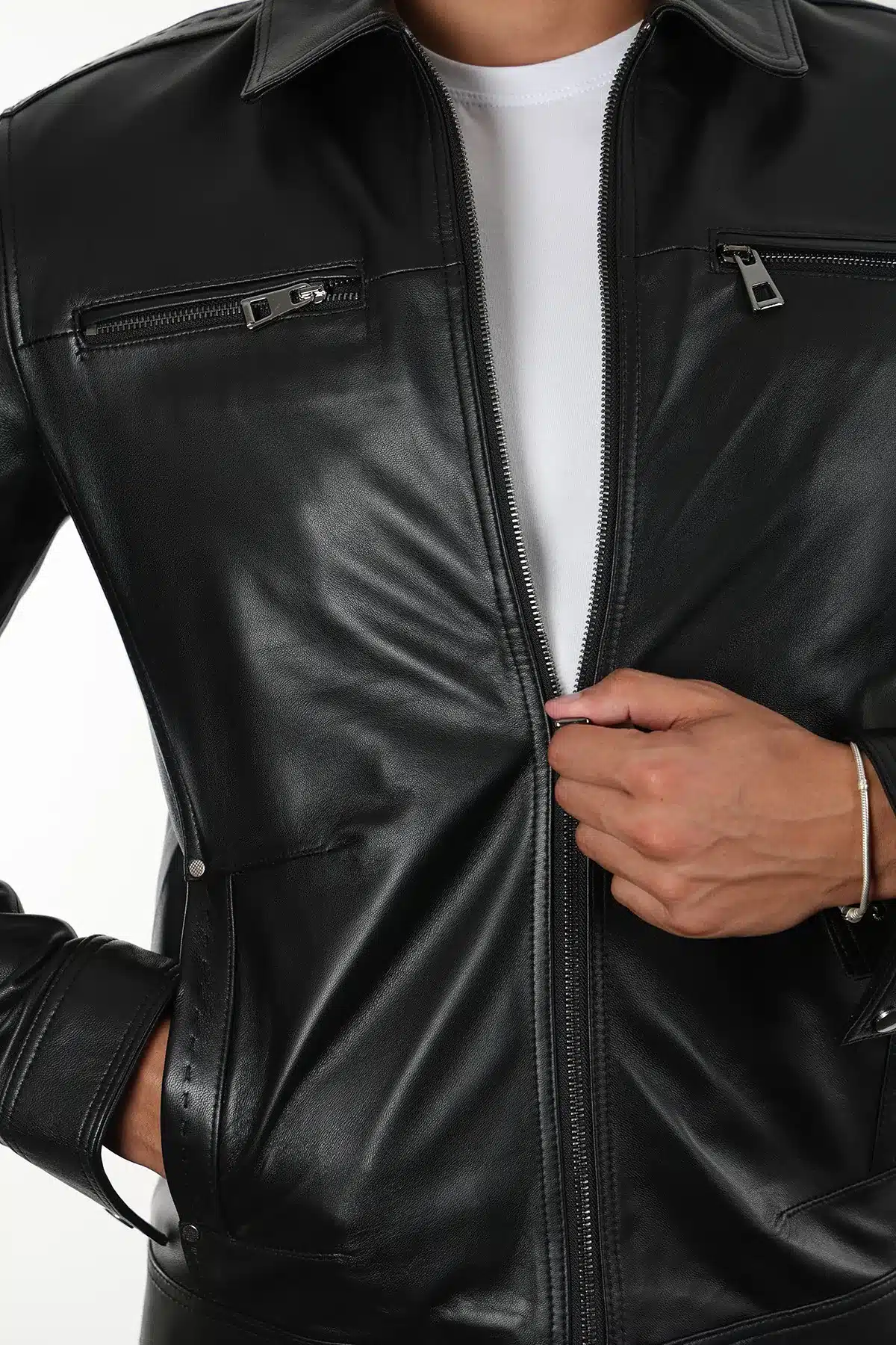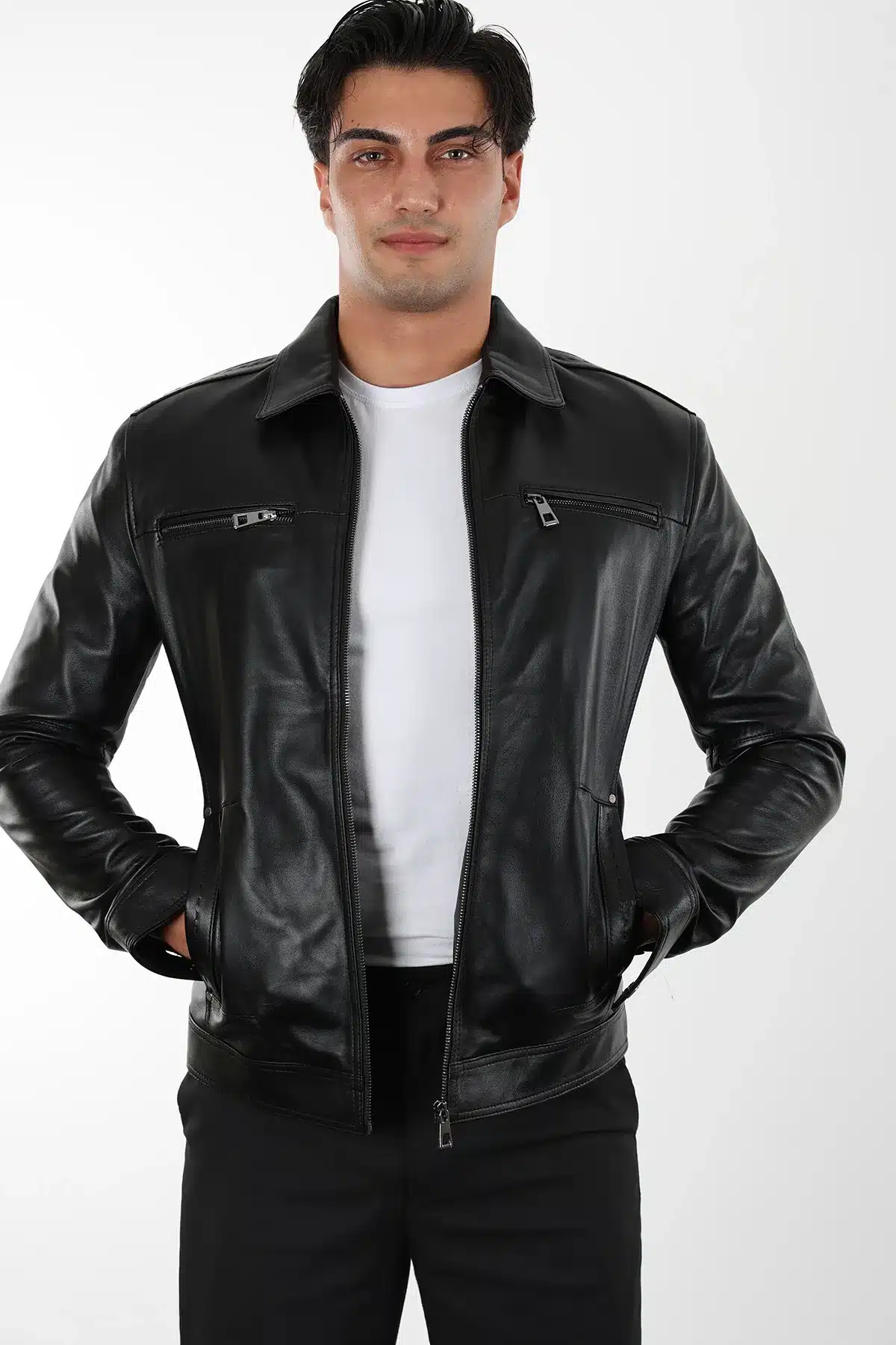 Vostok Erkek Siyah Kısa Hakiki Deri Ceket