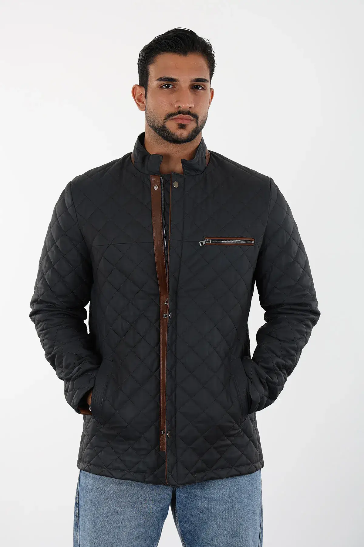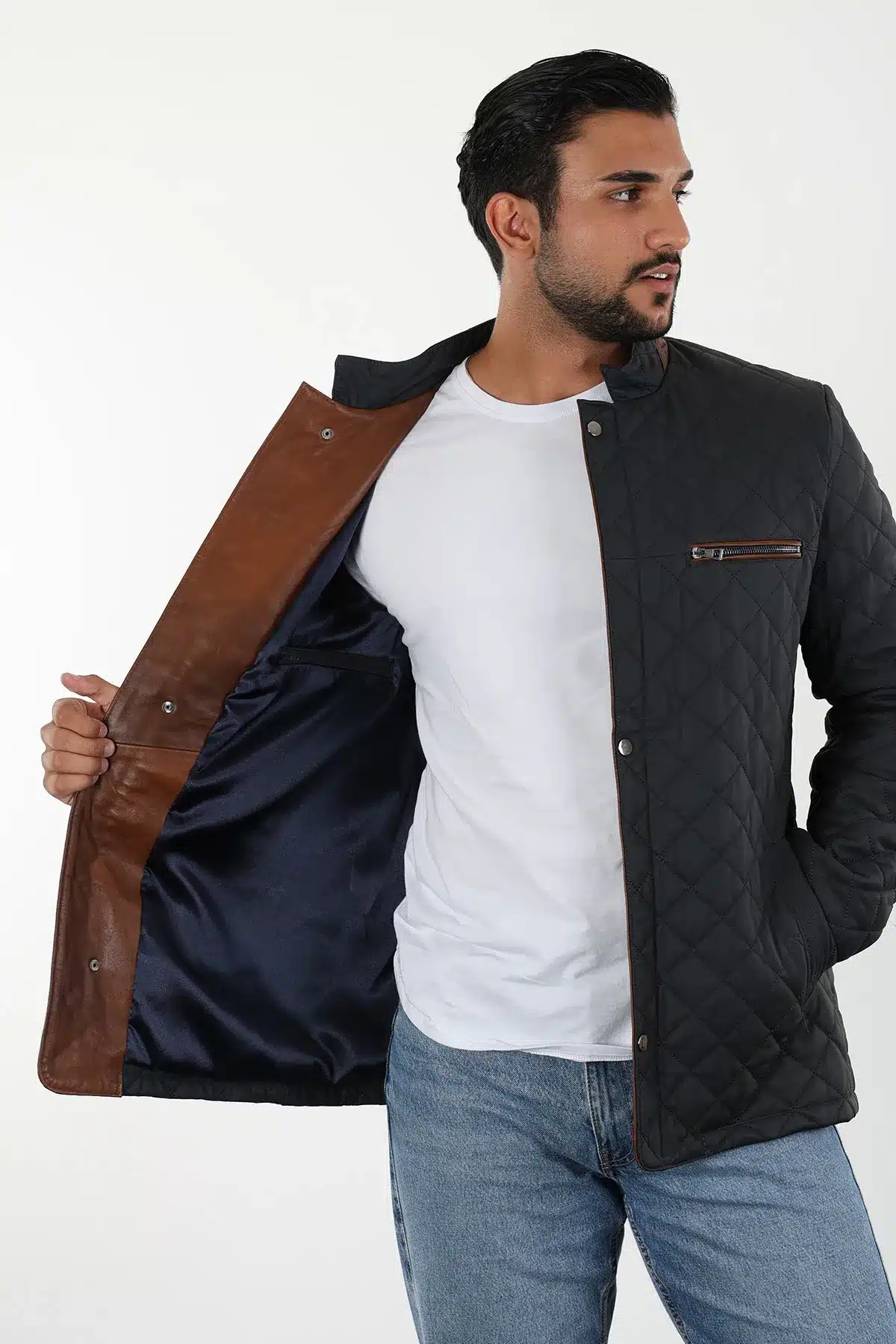 Denha Hakiki Lacivert Erkek Kısa Deri Ceket