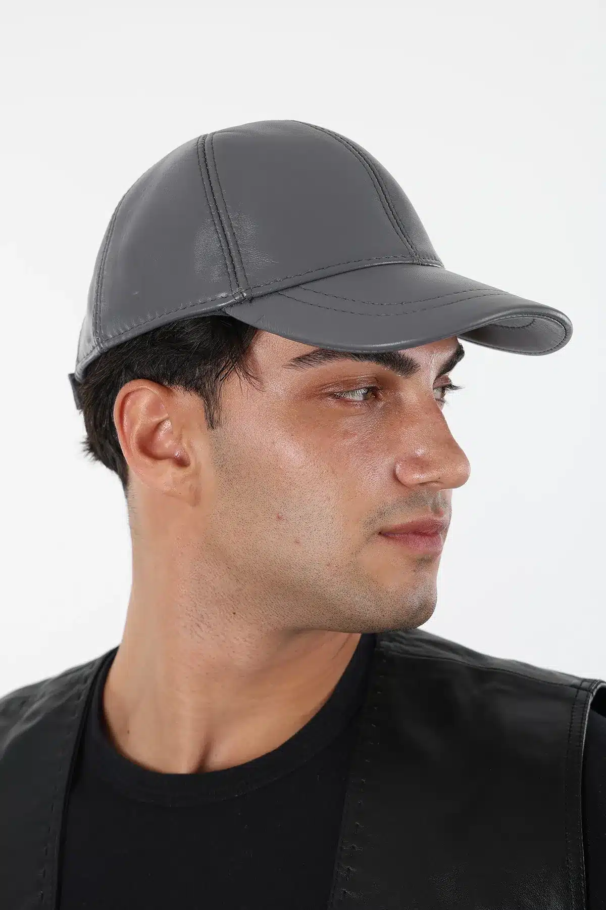 DERİHOUSE Unisex Gri Hakiki Deri Şapka