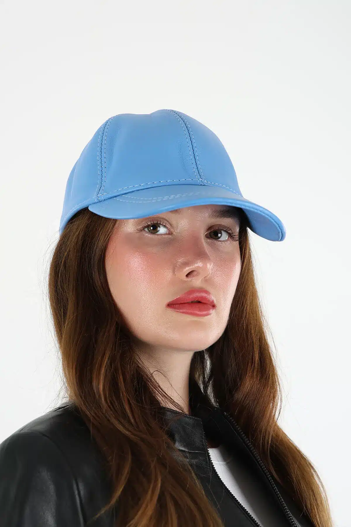 DERİHOUSE Unisex Mavi Hakiki Deri Şapka