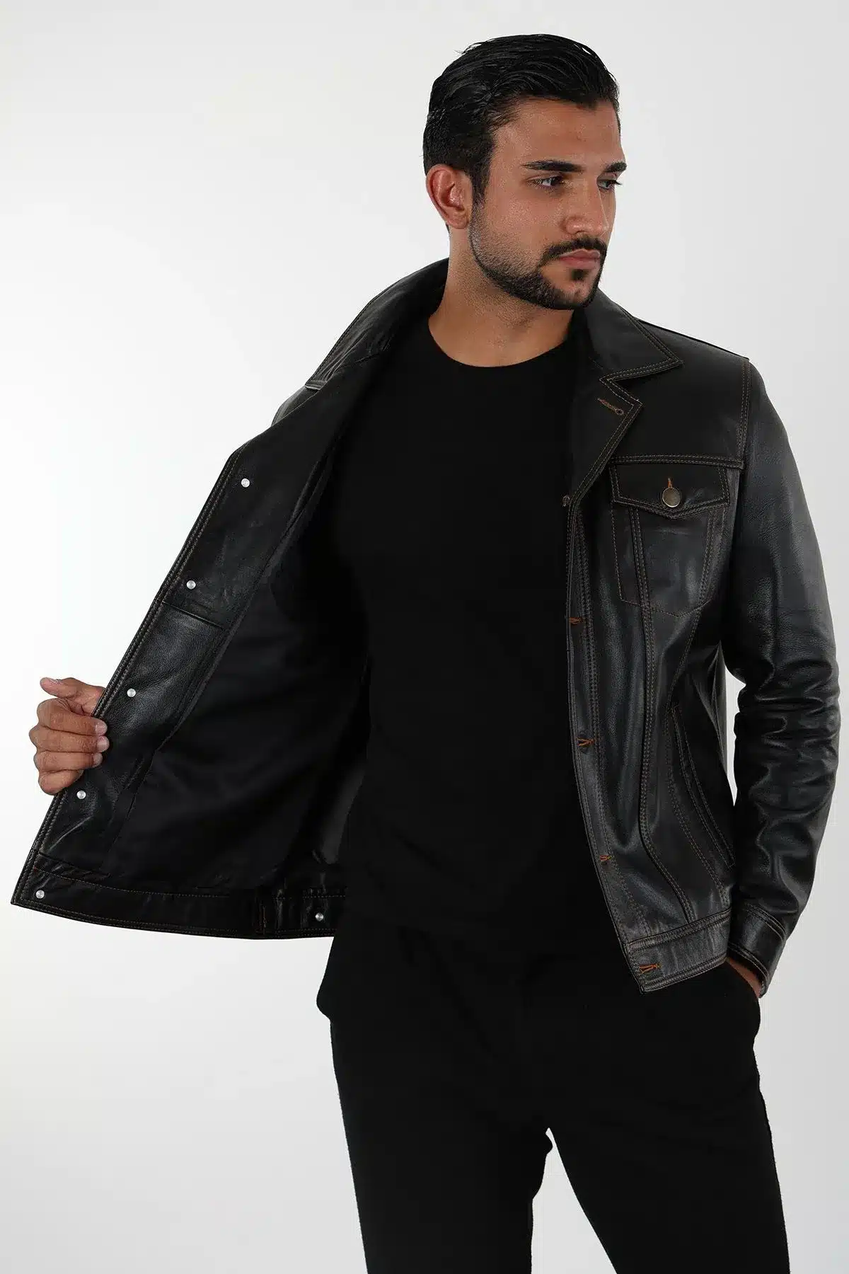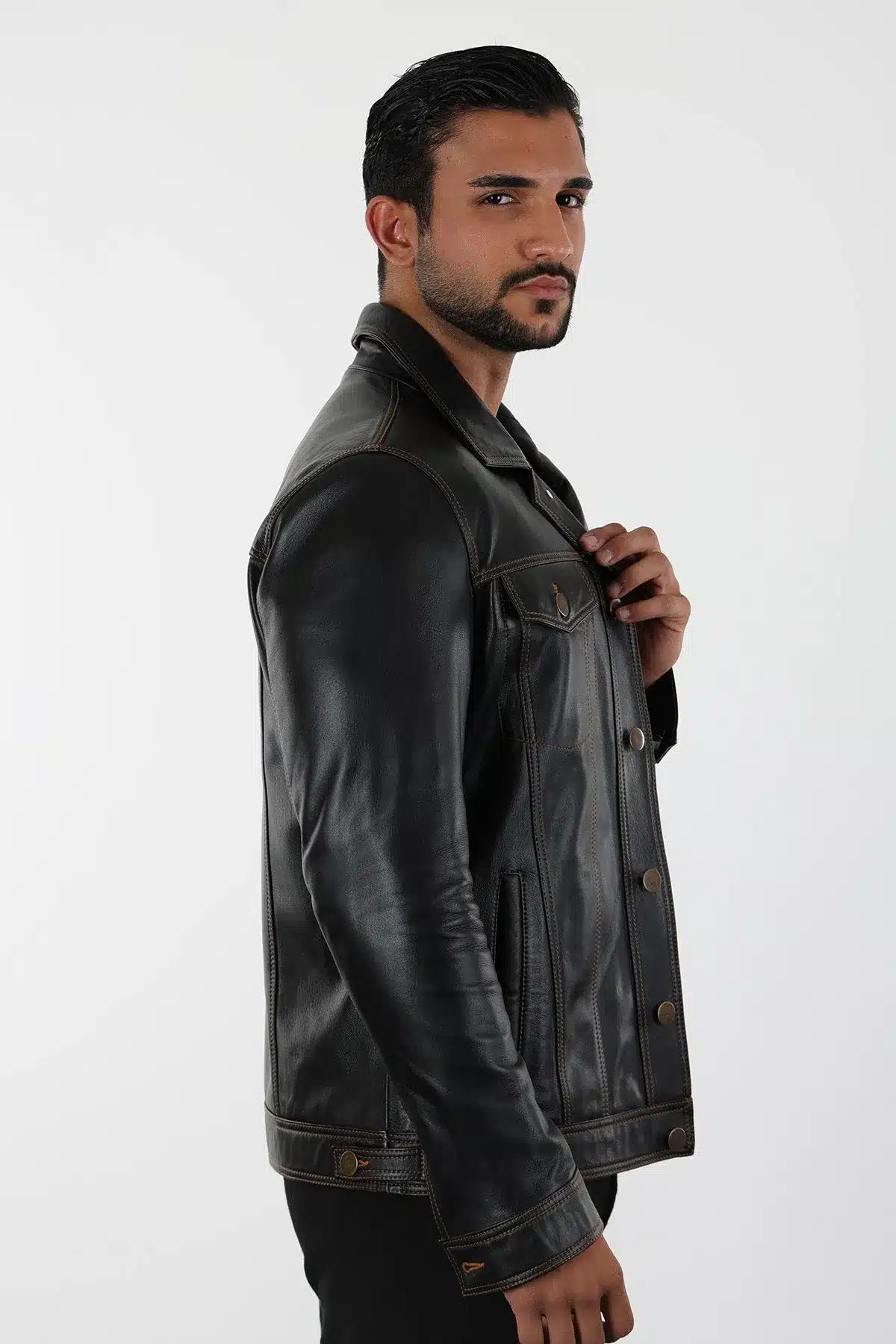 Koyu kahverengi hakiki deri ceket, şık ve dayanıklı tasarımıyla tarzınızı tamamlar. Günlük kullanıma uygun, kaliteli ve zarif bir seçenek.