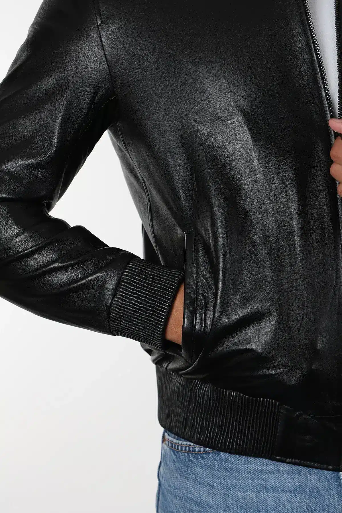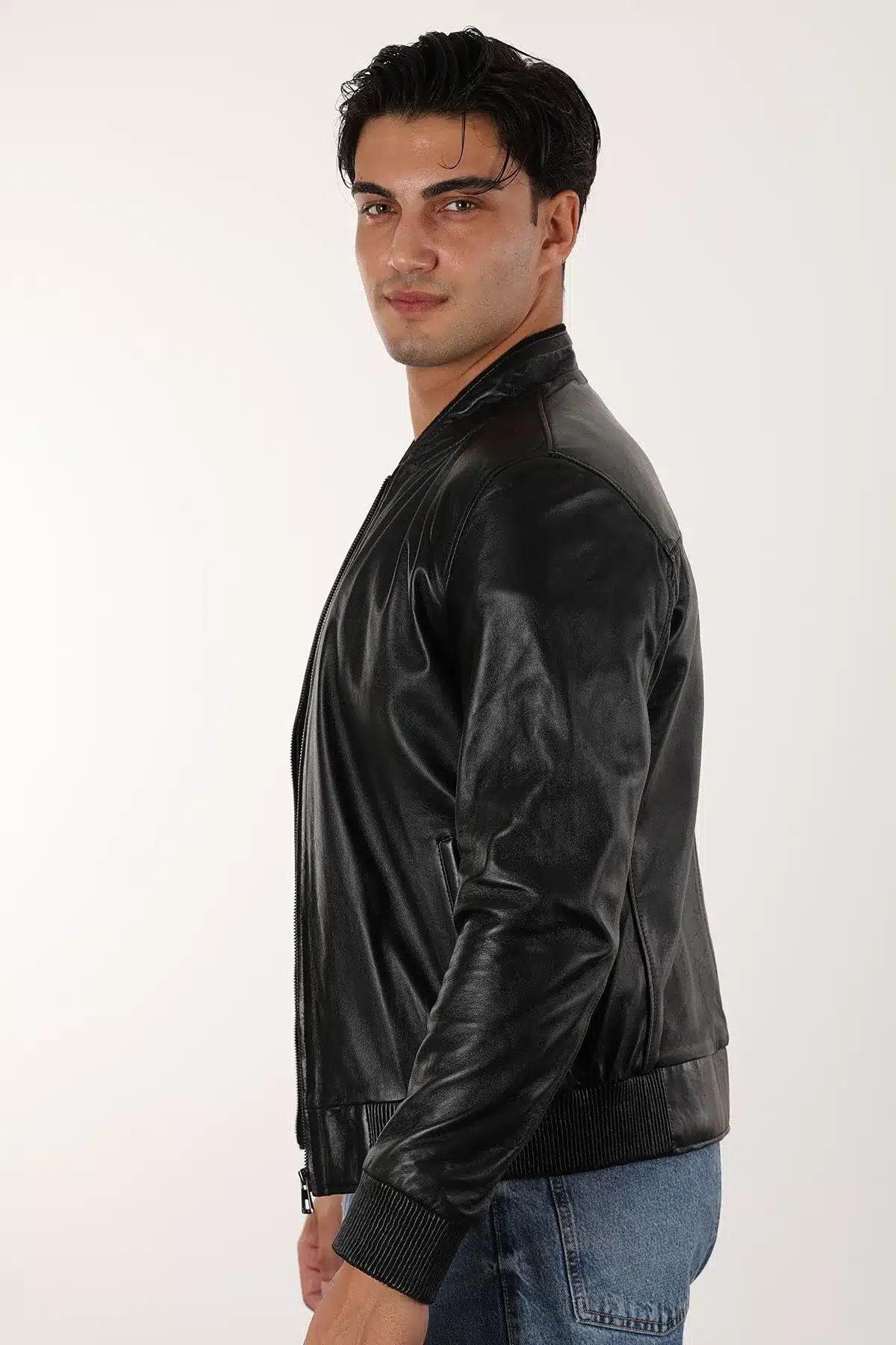 Robert Erkek Siyah Kısa Hakiki Deri Ceket