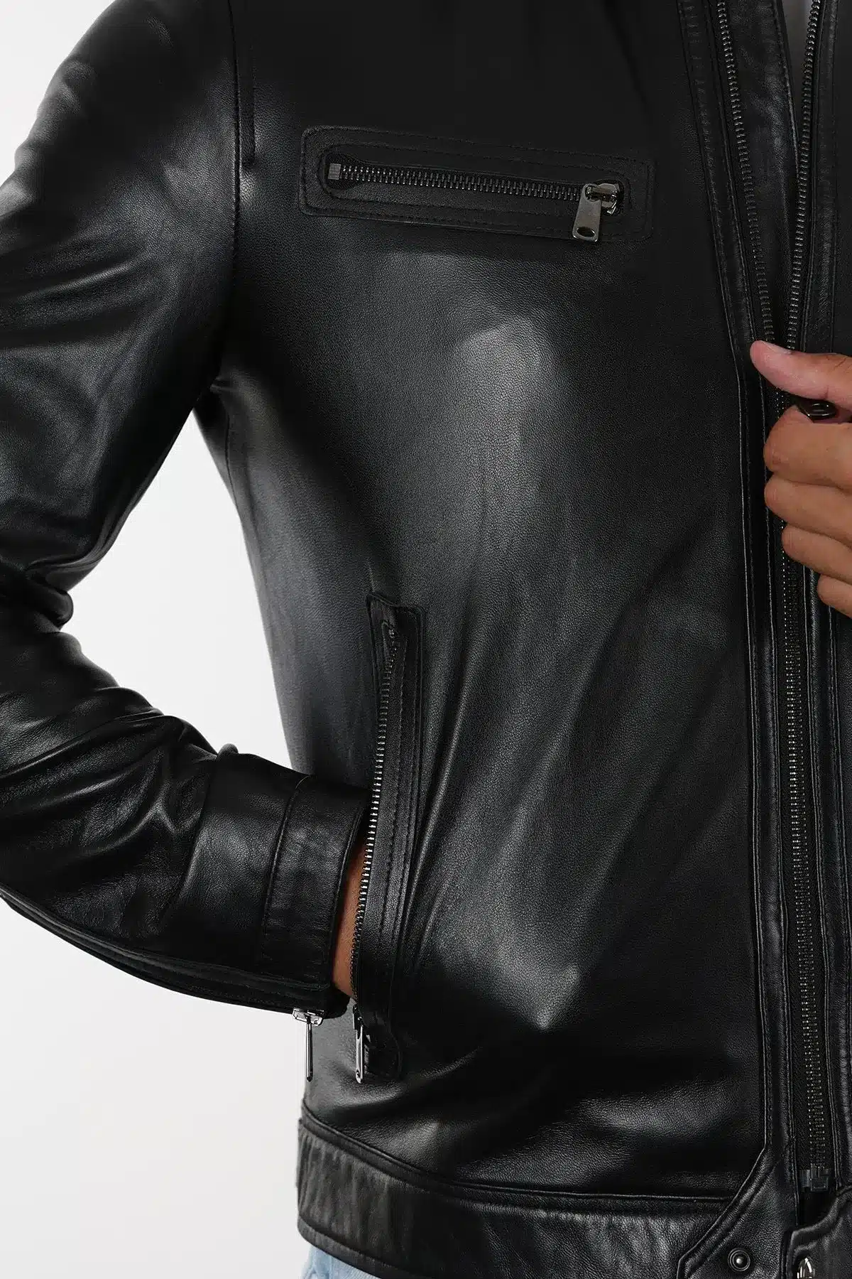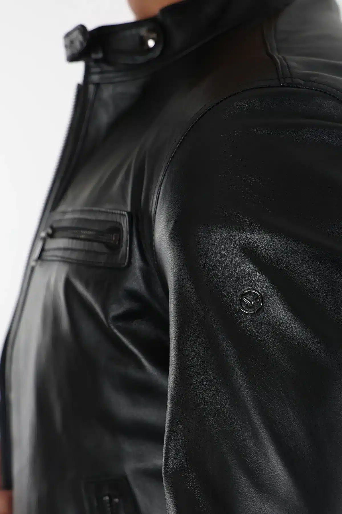 Varombe Erkek Siyah Kısa Hakiki Deri Ceket